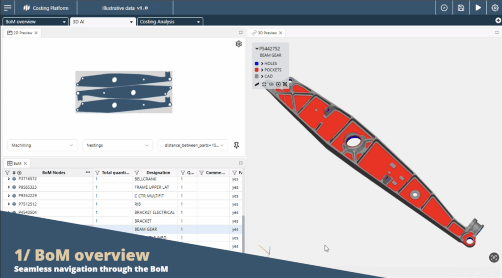 - l’extraction des inducteurs de coûts liés aux procédés (usinage, tôlerie, composites…).